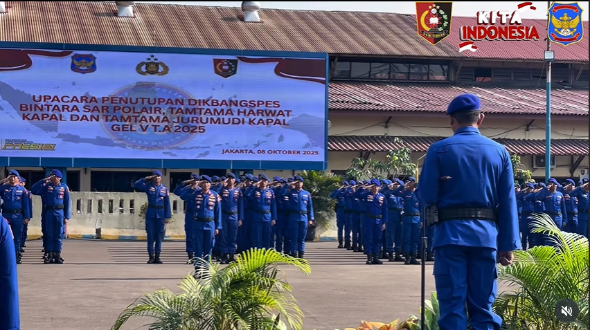 Jakarta, 15 Oktober 2025 – Pusat Pendidikan Kepolisian Perairan (Pusdik Polair) Lembaga Pendidikan dan Pelatihan (Lemdiklat) Polri menggelar Upacara Penutupan Pendidikan dan Pengembangan Spesialisasi (Dikbangspes) Bintara SAR dan Tamtama Jurumudi Gelombang 5 Tahun 2025, bertempat di lapangan upacara Pusdik Polair, Selasa (15/10/2025).
